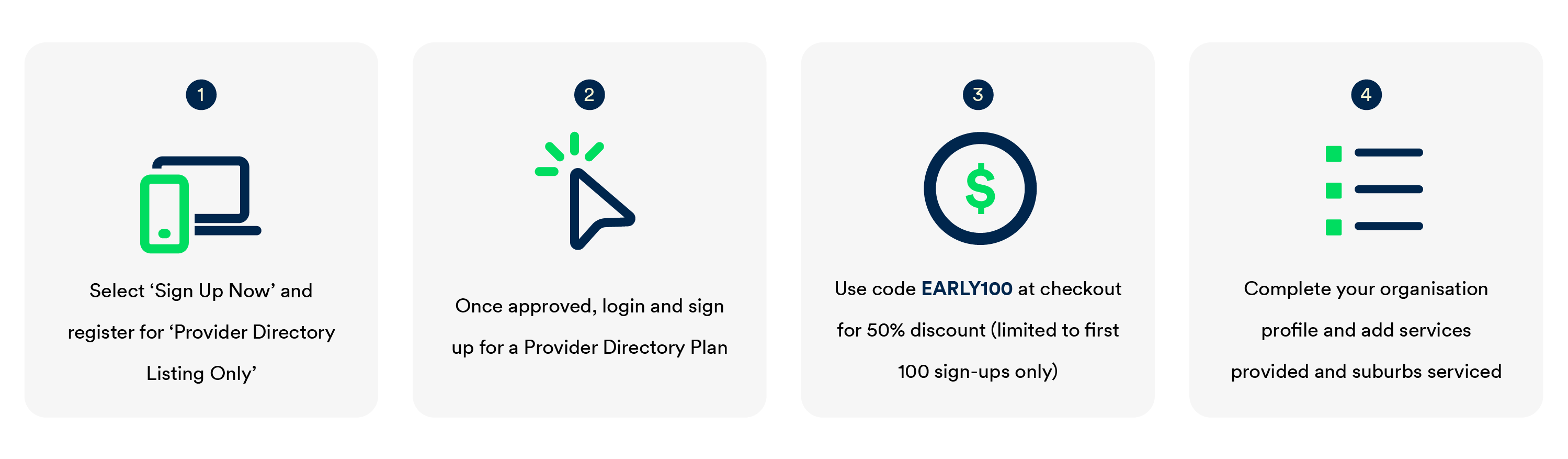 Join the Housing Hub Provider Directory and connect with thousands of people with disability and their supporters actively searching for services like yours. By listing your service(s), you'll be seen on a trusted platform connecting you with a highly targeted audience actively seeking accessible housing and home & living supports.