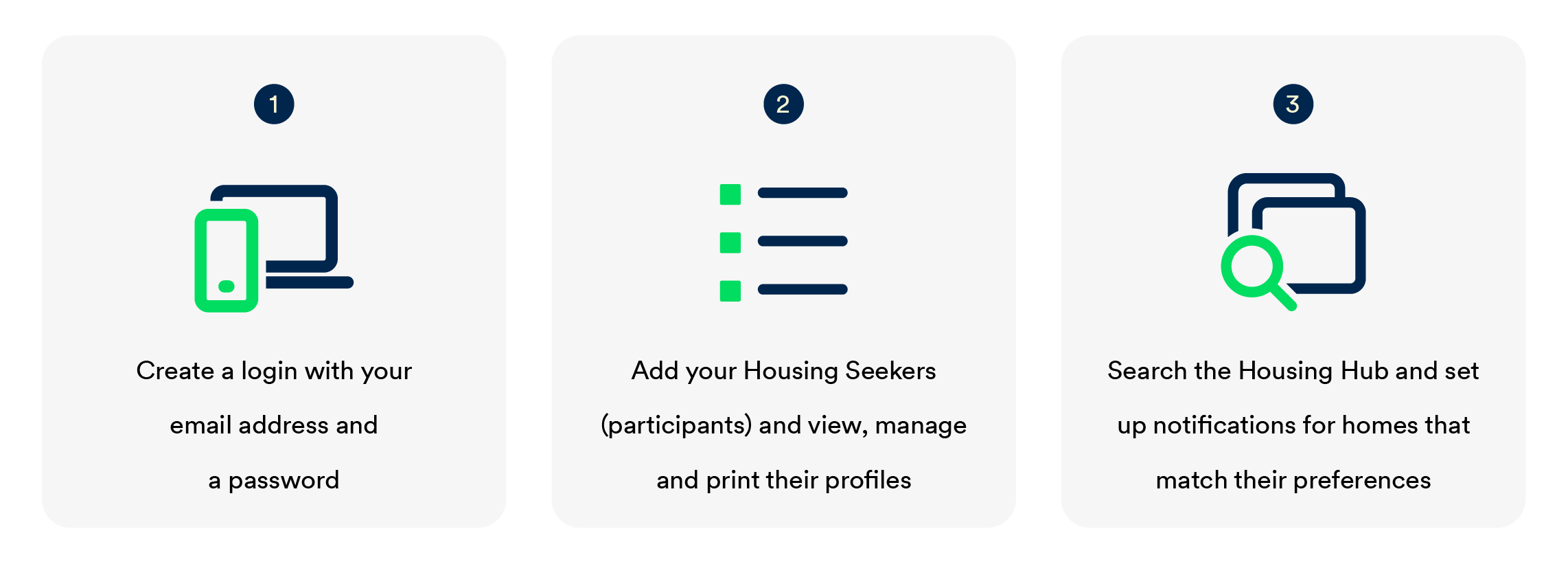 The Supporter Portal makes everything about your clients’ housing search easier. Through the portal, you can create a Housing Seeker Profile for each of the participants you support or you can have Seekers add you to their existing profile.